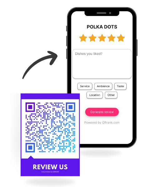 Our smart QR codes turn your tables into feedback hubs. Customers can instantly share their experiences, and you can act on insights right away. Say goodbye to waiting for feedback – with QRrank, you'll have it in a snap!